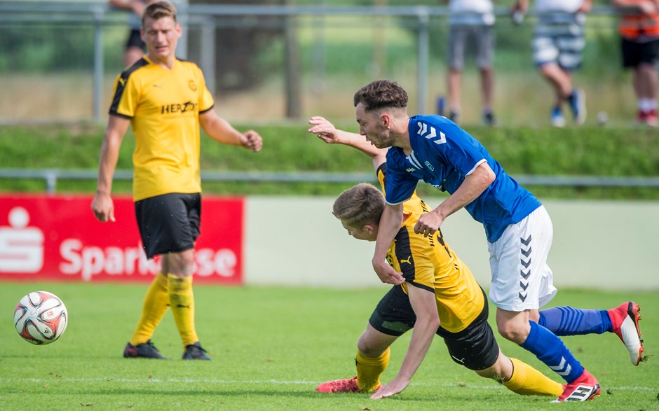 Dabei hatten die Burgherren wie schon beim 4:0-Sieg gegen Wendelstein eine starke Leistung geboten, dieses Mal eben nur das Tor nicht gemacht. Nach einer ersten Abtastphase, in der Hilpoltstein die reifere Spielanlage zeigte, kamen die Burgherren in der 15. Minute zu ihrer ersten Großchance, als Fabian Müller im Sturmzentrum freigespielt wurde, sein Schuss aber in letzter Sekunde von einem Burgfarrnbacher Abwehrspieler zur Ecke geklärt wurde. Hilpoltstein blieb weiter am Drücker, so dass die nächste Chance nicht lange auf sich warten ließ. Florian Wittmann kam an der Strafraumgrenze frei zum Abschluss, verfehlte das Gehäuse allerdings um Zentimeter.